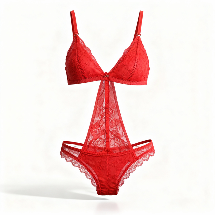 Body tipo trikini elaborado en tull y encaje.